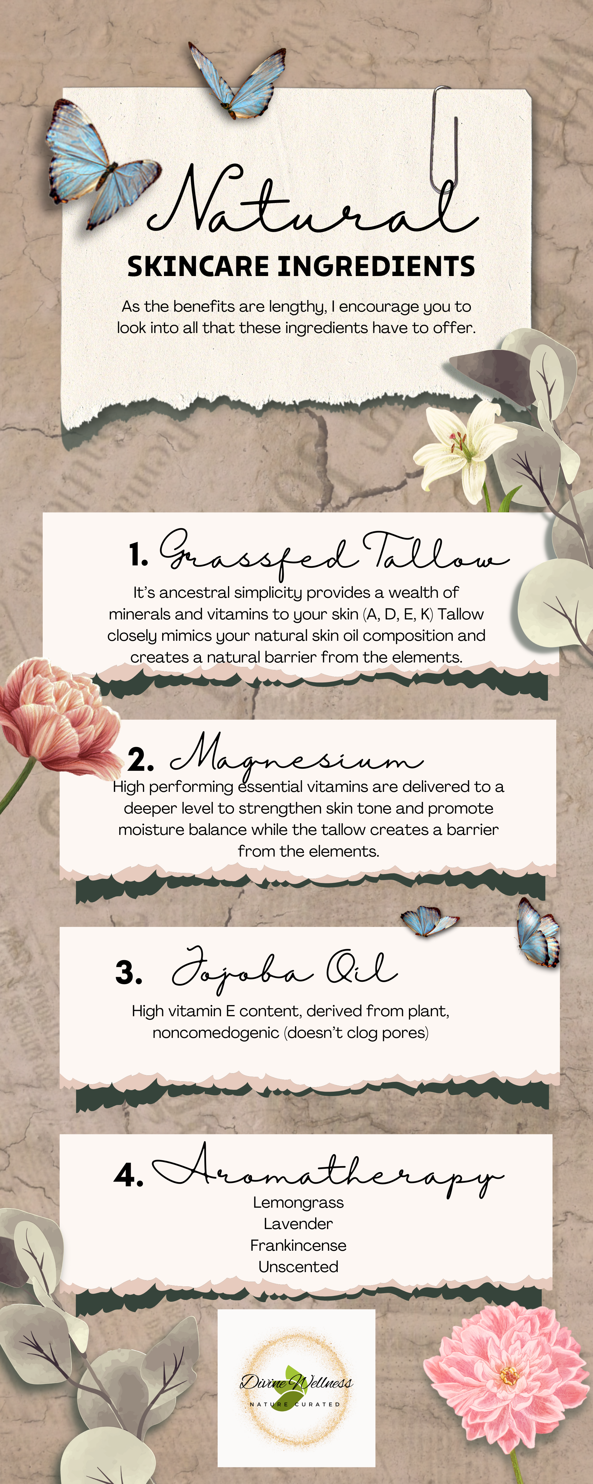If we can't understand what is on the label then we don't want it. All face and body creams, lip balms, and moisturizers are made with safe and handcrafted ingredients without the harsh chemicals, but with all the healing benefits.